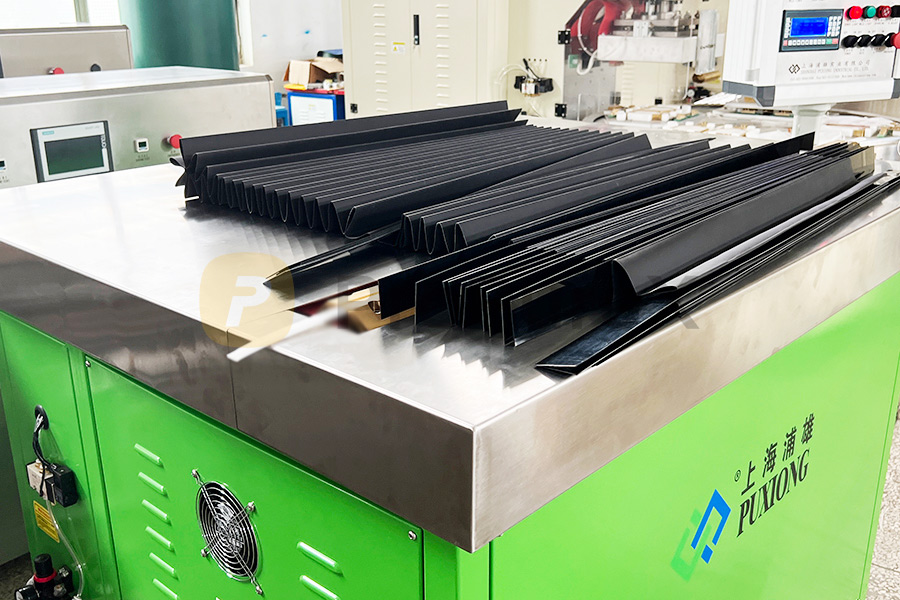 加长型PVC风琴式防护罩高频热合机,焊刀尺寸1500mm,适合PVC折布+PVC骨架长边一次性热合,1.5米长一次热合依旧可以保持高精度。